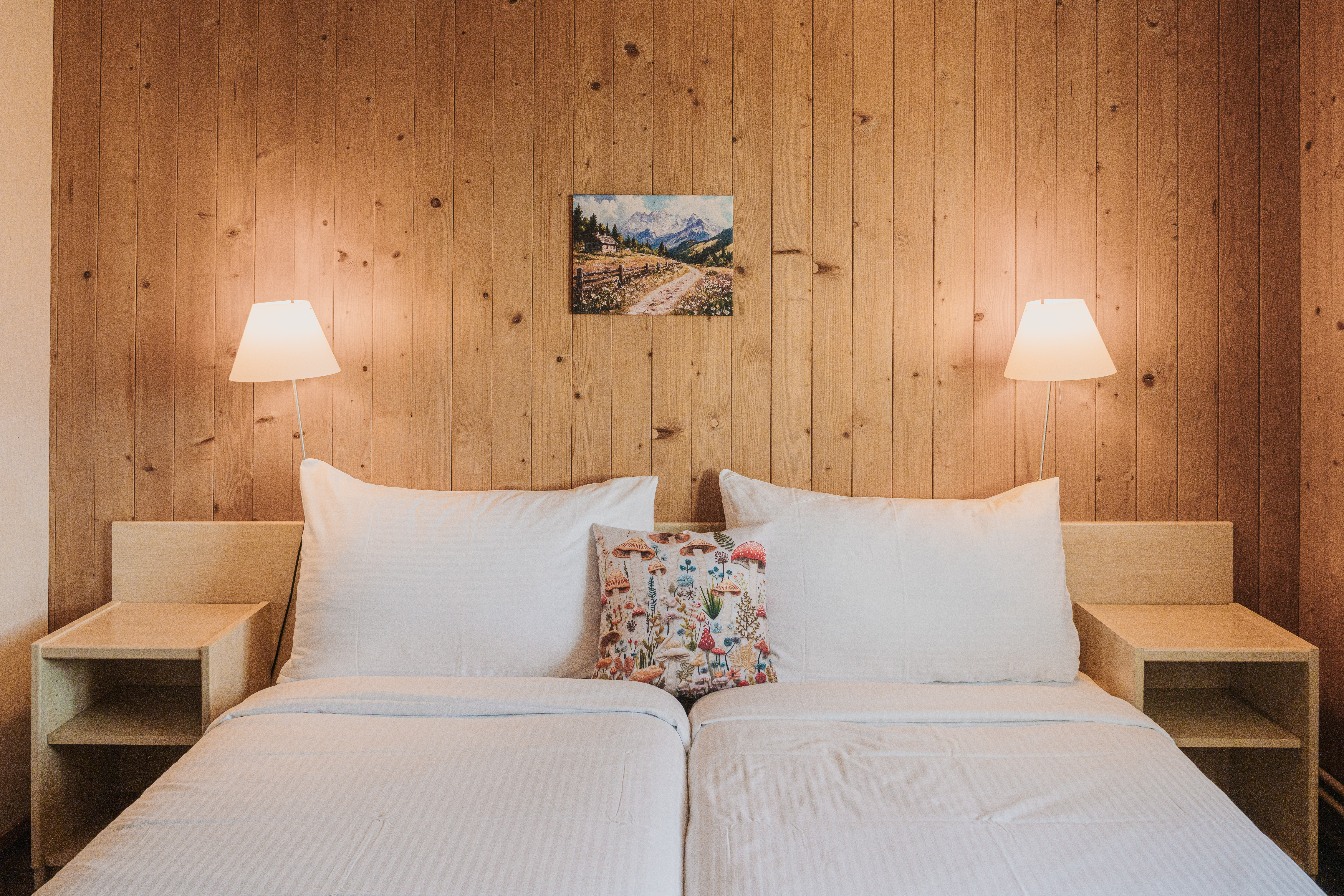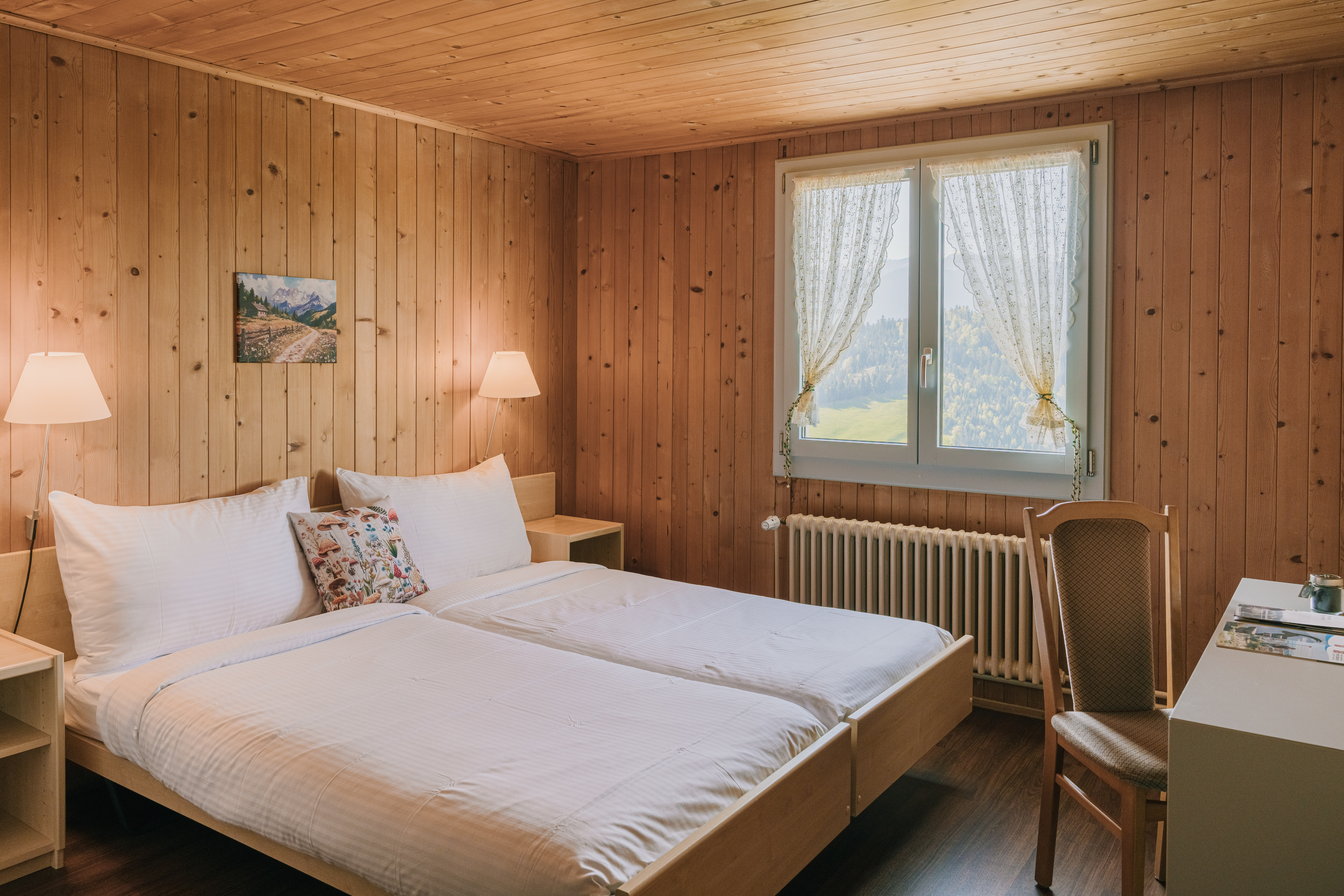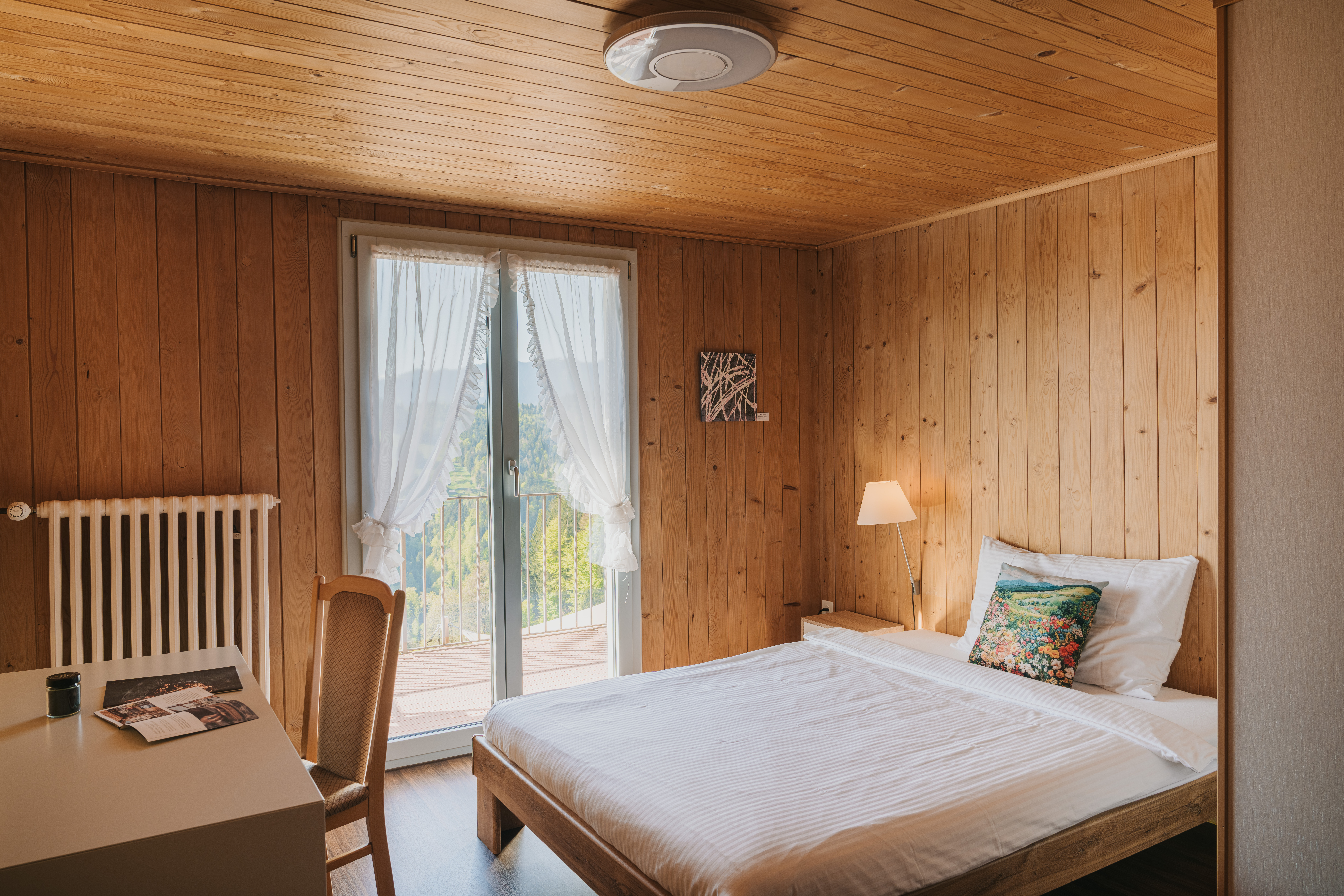 Die charmanten Holz-Zimmer sind perfekt geeignet für eine Regeneration nach einer anstrengenden Wanderung oder einem langen Seminartag. Das alte Holztäfer verbindet die Geschichte des Hauses mit der Philosophie von Stefan Wiesner. Die Zimmer sind einfach ausgestattet und bieten Wohlbehagen für eine erholsame Nacht.
