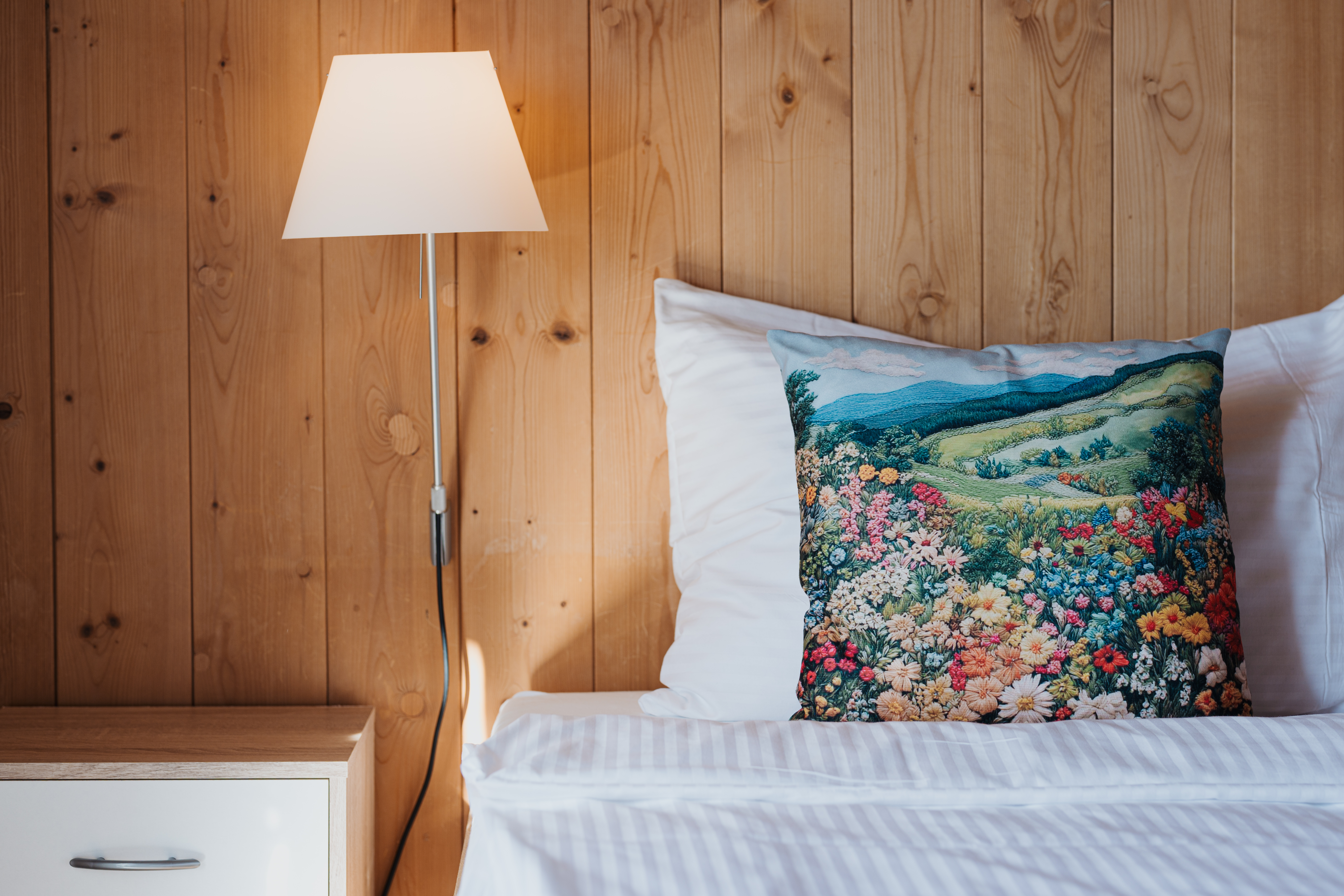 Die 20 unterschiedlichen Zimmer bieten für jeden das Richtige. Denn unsere Zimmer machen Ihnen das Schlafen und das Aufstehen so behaglich und angenehm wie möglich. Auf 1'052 Metern über dem Meer sind Sie nur von der Natur umgeben. Sie hören die Glocken der Kühe und der Kirche, die Grillen im Sommer und das Knacken des alten Hauses. Bei klarem Nachthimmel haben Sie das ganze Universum für sich und können die Sterne beobachten. Lassen Sie sich von dieser Magie verzaubern und erleben Sie eine Auszeit vom Alltag.